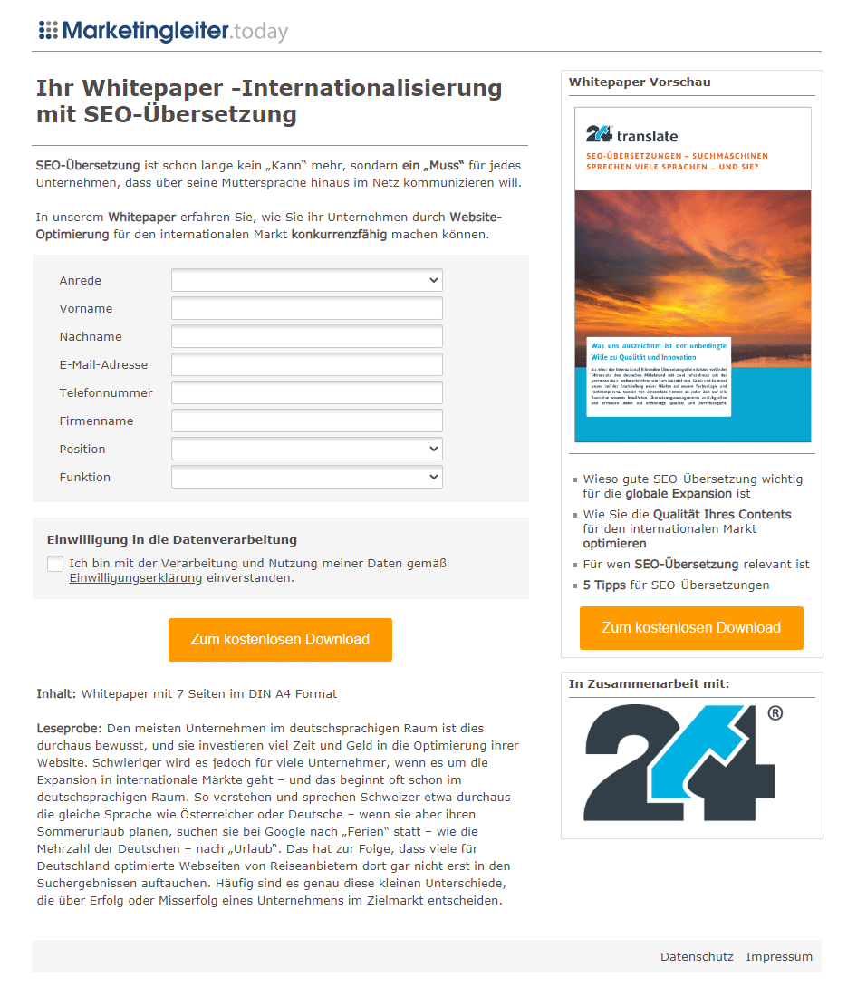 Hier kommt SEO-Übersetzung ins Spiel. Ein „Muss“ für jedes Unternehmen, dass über seine Muttersprache hinaus im Netz kommunizieren will. In unserem Whitepaper aus der Zusammenarbeit mit Themensponsor 24translate erfahren Sie, wie Sie Ihr Unternehmen durch Website-Optimierung für den internationalen Markt konkurrenzfähig machen.