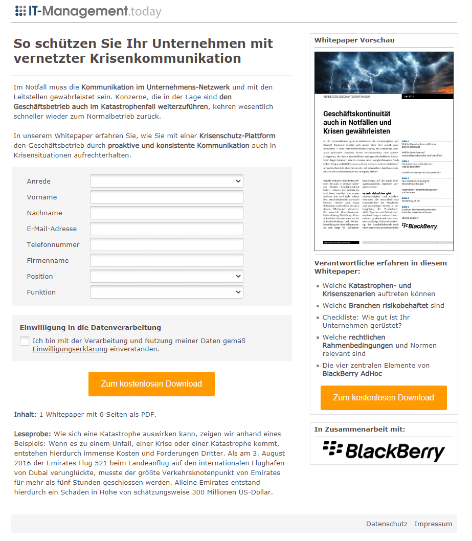 Der entscheidende Faktor hierfür ist eine umfassende Safety-and-Security-Lösung. In unserem exklusiven Whitepaper aus der Zusammenarbeit mit Blackberry erfahren Sie, wie Sie mit einer Krisenschutz-Plattform den Geschäftsbetrieb durch proaktive und konsistente Kommunikation auch in Krisensituationen aufrechterhalten.