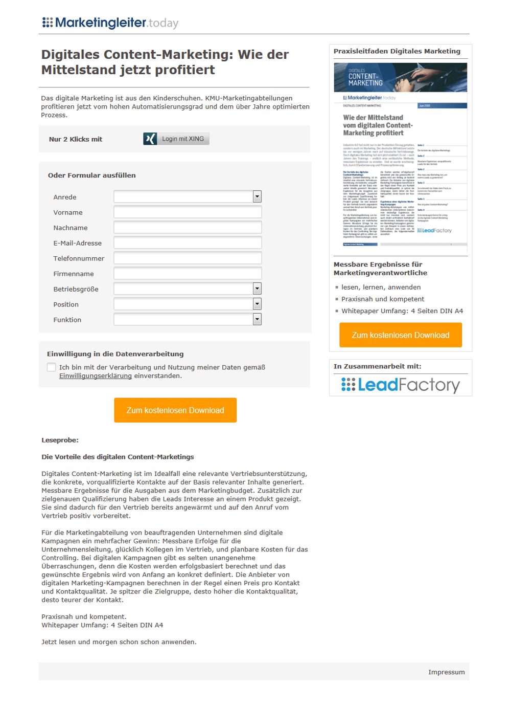 Digitales Content-Marketing ist im Idealfall eine relevante Vertriebsunterstützung, die konkrete, vorqualifizierte Kontakte auf der Basis relevanter Inhalte generiert. Messbare Ergebnisse für die Ausgaben aus dem Marketingbudget. Zusätzlich zur zielgenauen Qualifizierung haben die Leads Interesse an einem Produkt gezeigt. Sie sind dadurch für den Vertrieb bereits angewärmt und auf den Anruf vom Vertrieb positiv vorbereitet.
