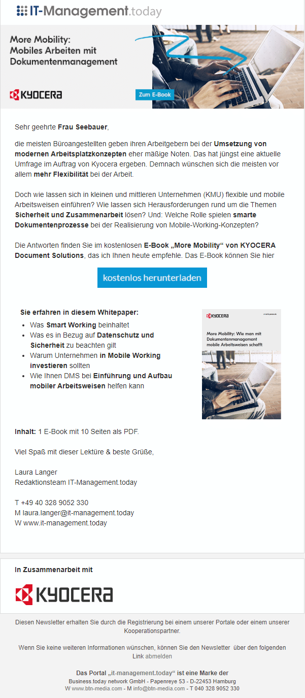 Die Antworten finden Sie im kostenlosen E-Book „More Mobility“ von KYOCERA Document Solutions, das ich Ihnen heute empfehle.