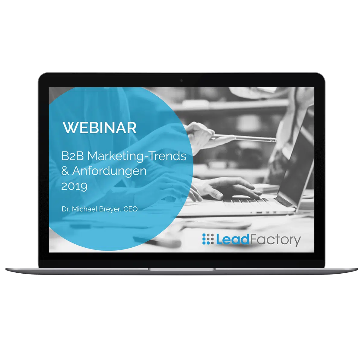 Webinar leads are Marketing Qualified Leads (MQL) who fit the campaign-specific target group and who have actively registered to participate in a campaign sponsor’s webinar. You have actively given your declaration of consent for the campaign sponsor to contact you further. The leads were generated with a content marketing campaign via email and other channels and have been qualified and quality assured by the LeadFactory.